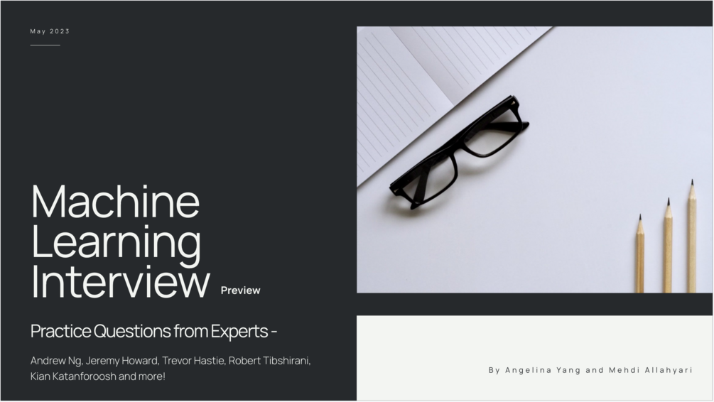 To give you a better idea of what to expect in the "Machine Learning Interview Practice Questions from Experts" ebook, I’ve included a preview of 8 technical questions and 1 soft skill question in this free preview.
